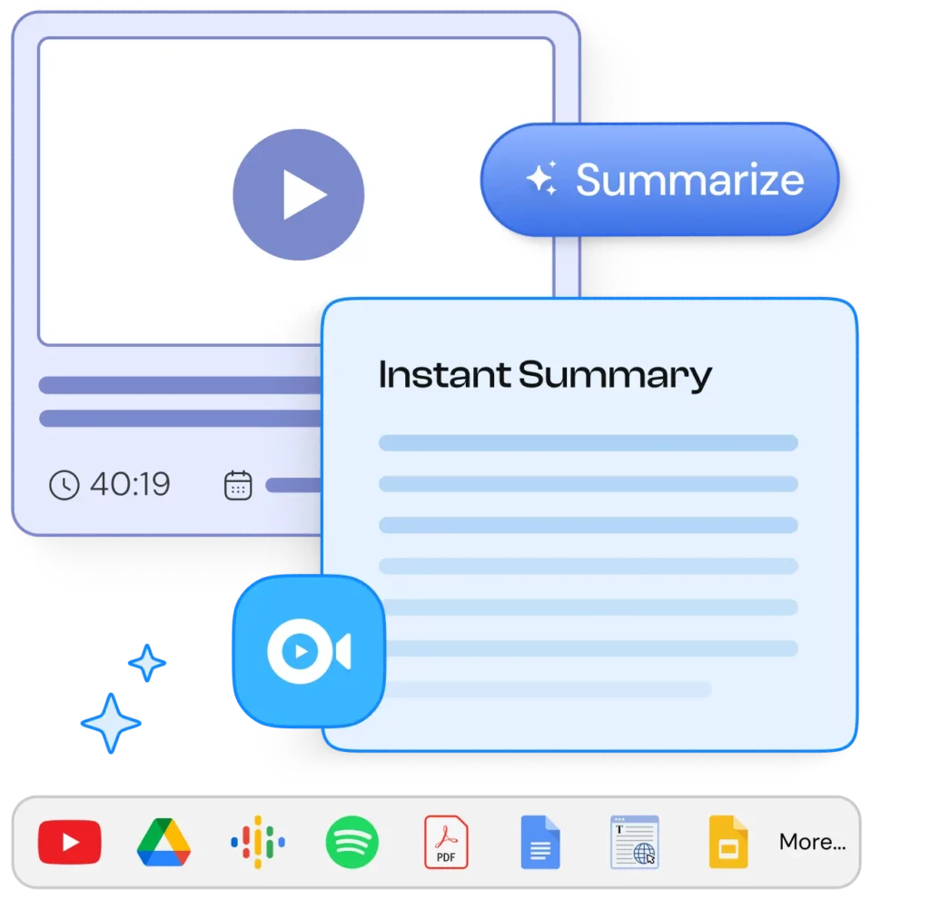 Learn key takeaways from content in minutes instead of hours. No more wasting time on lengthy videos.