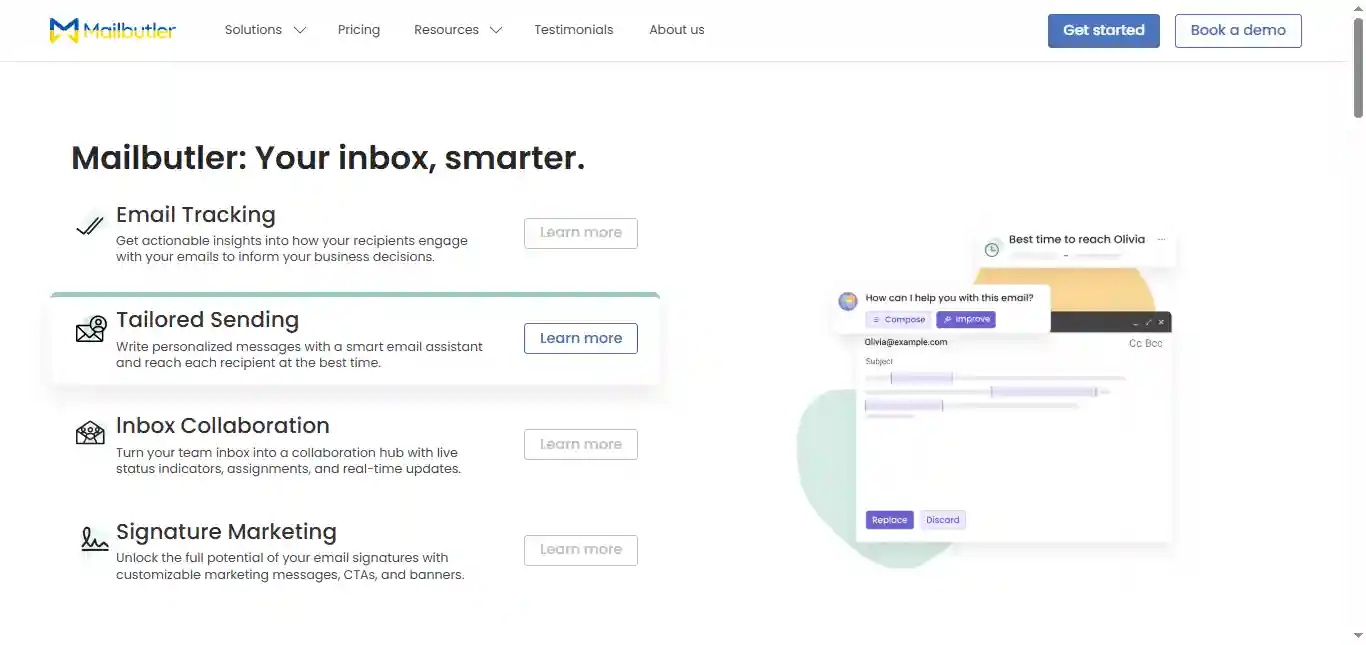 Mailbutler operates as a versatile productivity extension compatible with Gmail, Apple Mail, and Outlook. Its “Smart Assistant” feature goes beyond simple summarization by focusing on turning your inbox into a command center for your tasks. The tool’s key strength is its ability to intelligently scan and summarize emails to identify and extract concrete action items, which can then be seamlessly converted into a to-do list. This positions Mailbutler as the perfect tool for users who want to embed a layer of AI-powered project management directly into their existing email client. It enhances individual emails and threads rather than performing bulk summarization.