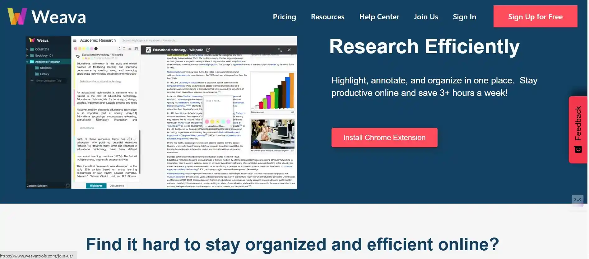 Weava is a simple, collaborative highlighter designed primarily for research organizations. It allows you to quickly mark and categorize highlights from different sources into themed, color-coded folders and collections. It focuses on organizing your captured quotes and notes for easy export and reference.
