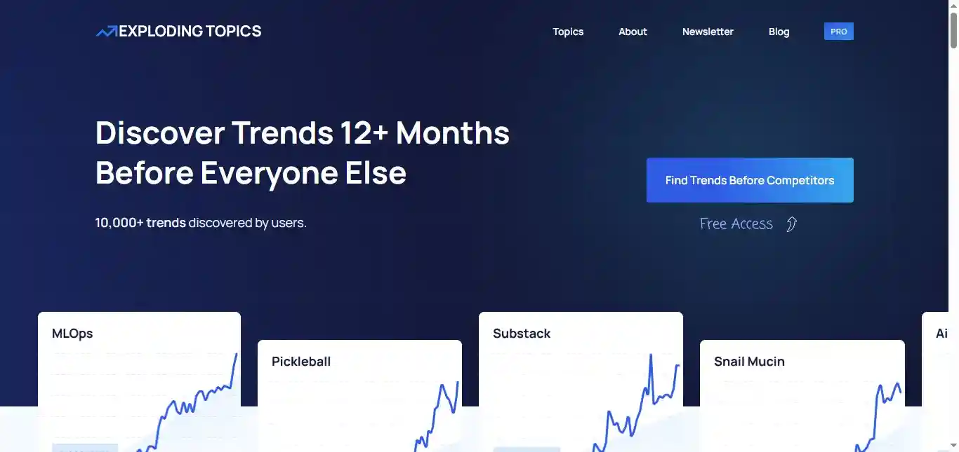 ExplodingTopics shows what’s trending in your niche. It helps you spot new trends early. Hence, you can create videos that get attention.