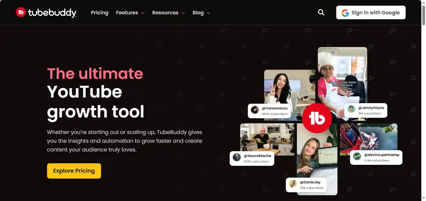 Morningfame is known for understanding your channel’s growth. It provides in-depth analytics plus personalized recommendations. It also helps you choose the best keywords and titles. Thus making it easier to rank in search results.