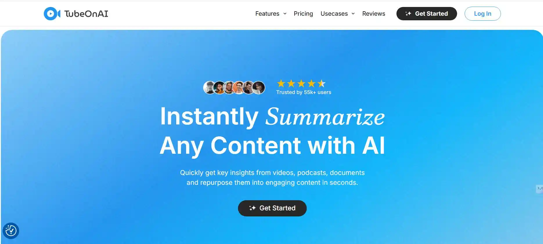 Tubeonai is the most specialized tool for deep analysis, transcription, and repurposing of video and audio content. It can summarize PDFs, articles, and Google Drive files, too.
