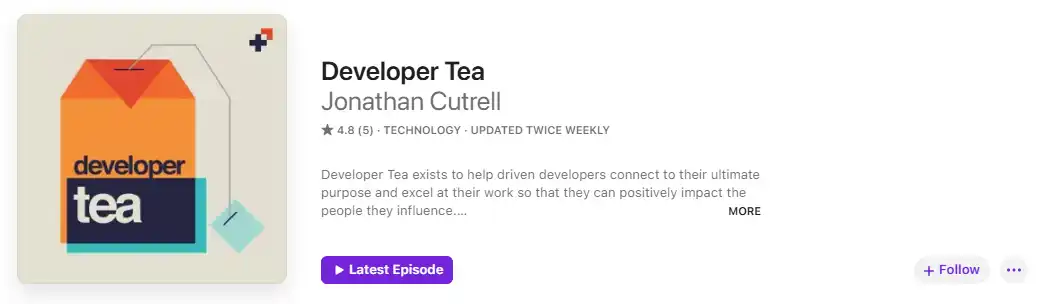 Developer Tea is an amazing choice if you’re looking for a podcast that can spark your creativity and help you thrive in your tech career.
