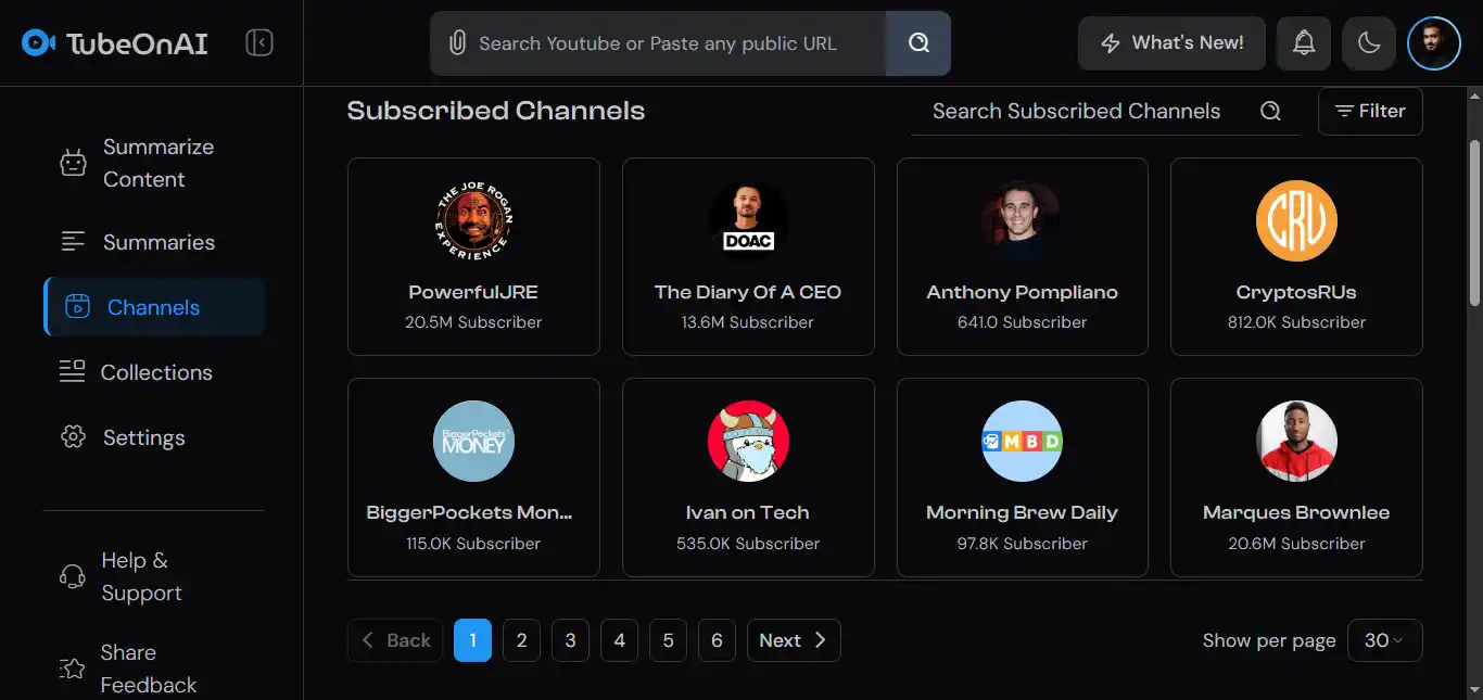 TubeOnAI lets users subscribe to their favorite YouTubers and podcasters, helping them create a personalized content library – a feature not available in NoteGPT.
