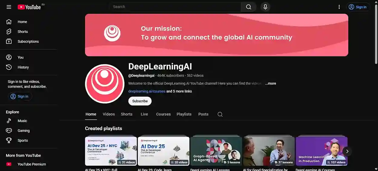 This channel was started by Andrew Ng, a famous leader in AI. It has videos from his popular online courses and discussions from other AI experts. It is a great resource if you want to get a solid education in deep learning.