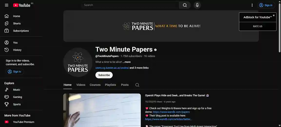 If you’re interested in learning about AI but struggle to find the time, the Two Minute Papers YouTube channel is an excellent resource. It offers quick, engaging explanations of the latest research in AI and machine learning — all based on academic papers and delivered in just a couple of minutes. With over 1.5 million subscribers, this channel makes AI research both accessible and enjoyable, helping you stay informed within a very short time.