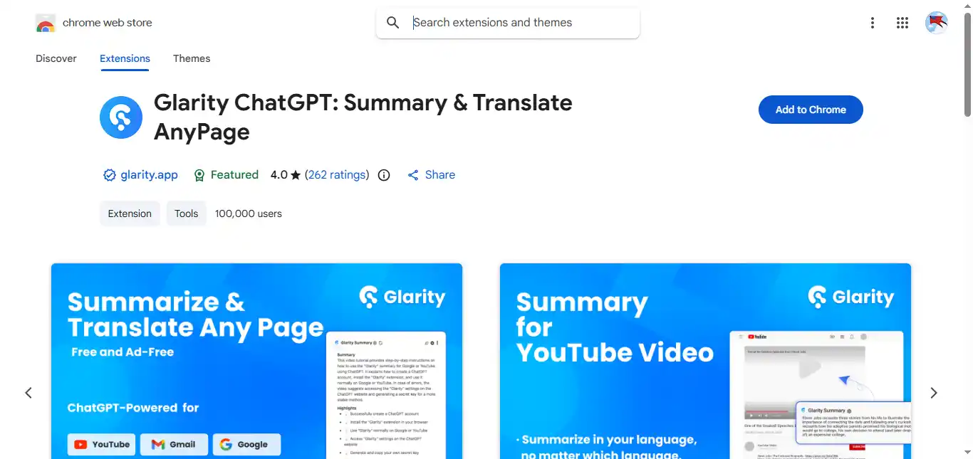 - Summarization Across Platforms: Glarity offers summaries not just for YouTube videos but also for articles, search engine results, and other web content. This makes it a versatile tool for various types of online content.
