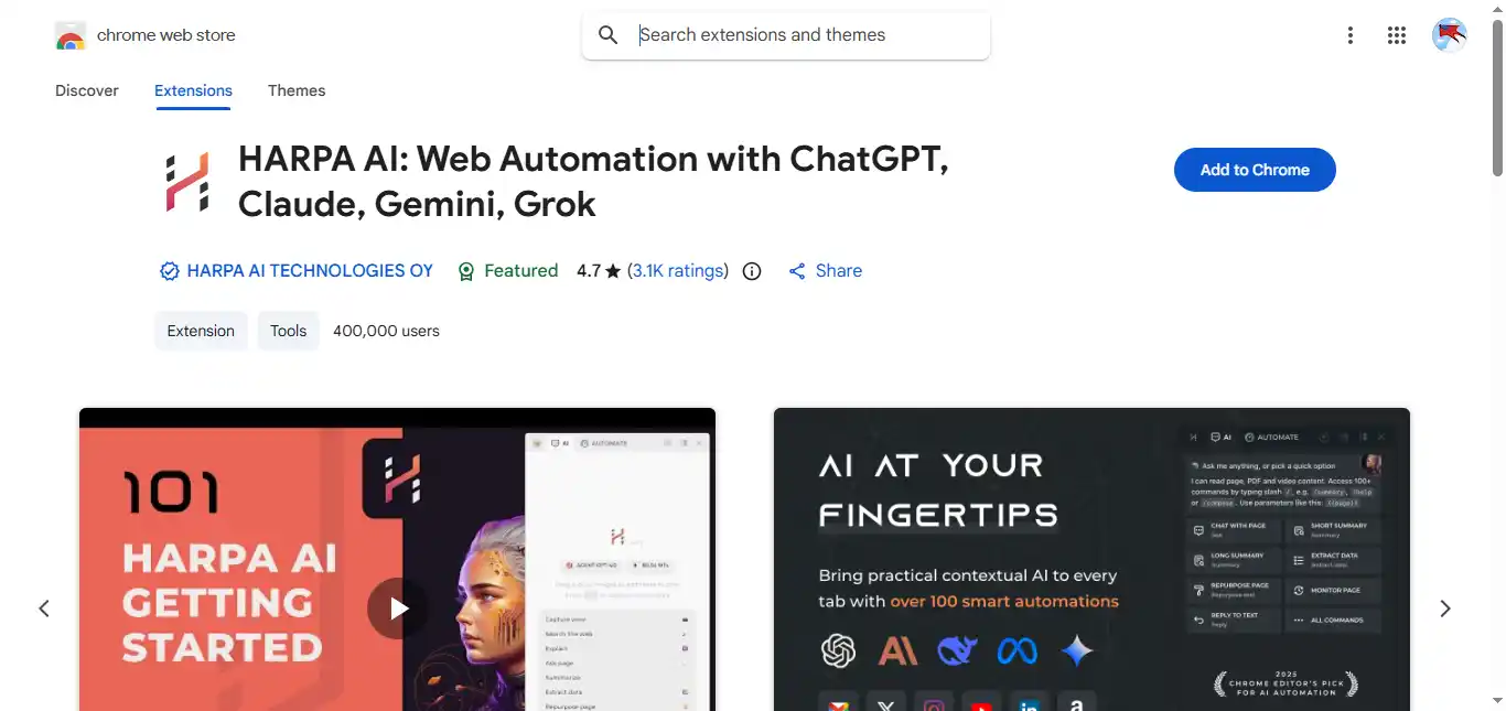 HARPA AI is a multifunctional browser extension designed to enhance productivity and accessibility by integrating a wide range of features such as voice commands, content summarization, task automation, and data extraction directly within the browser.