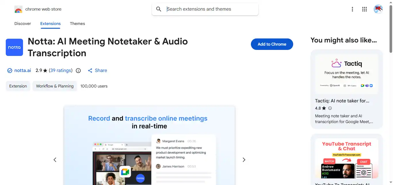 - Real-Time Transcription: Notta extension provides real-time transcription of the video